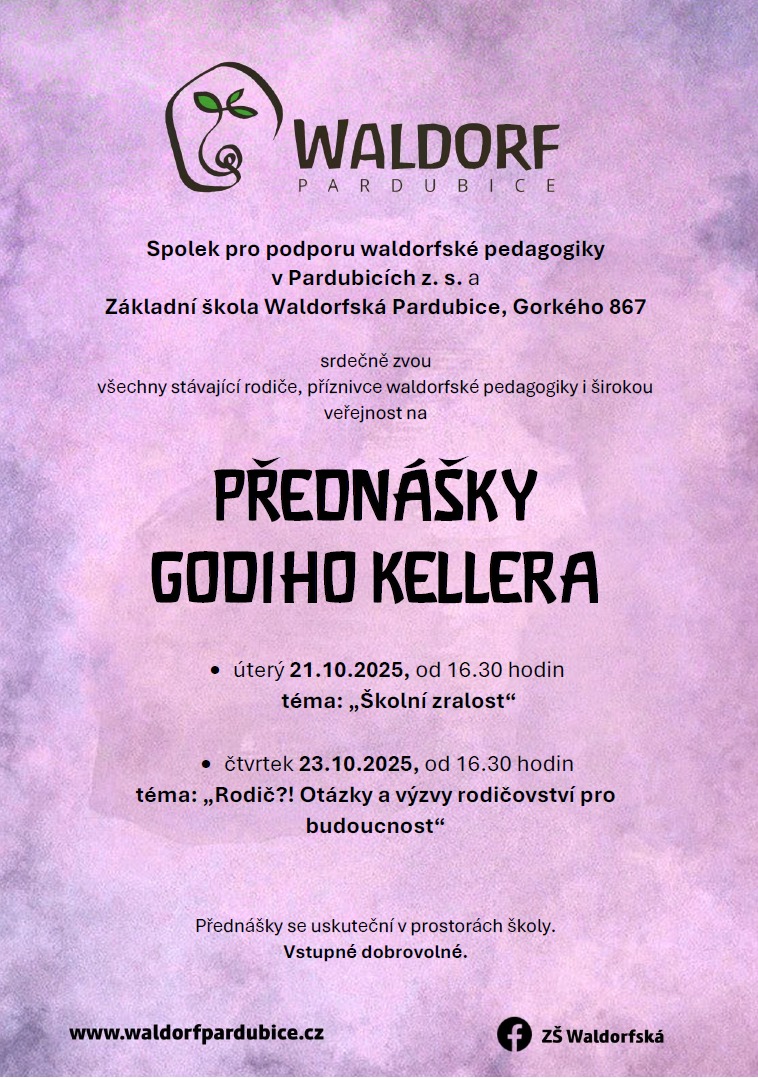 A je to zase tady, po nějaké době k nám do Waldorfské základní školy v Pardubicích přijede Godi Keller. Úžasný člověk, vypravěč, pedagog, autor a mentor naší školy. Pokaždé přiveze důležitá poselství a také dávku laskavé podpory pro učitele, vychovatele i rodiče.